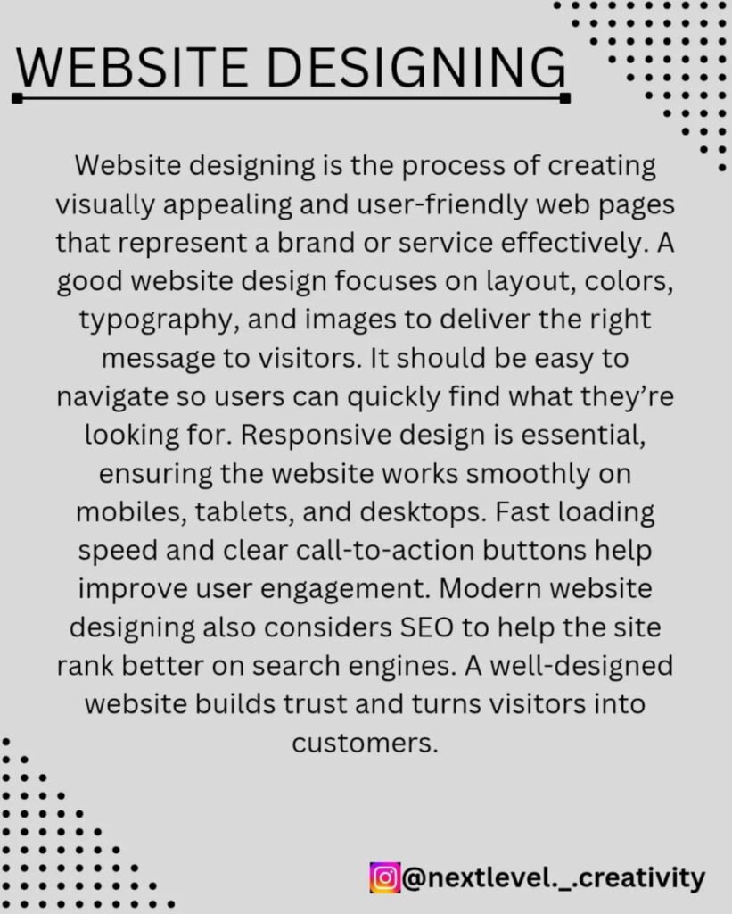 Your website is your digital storefront. A well-designed website builds trust, increases engagement, and improves conversions. Modern website designing focuses on: